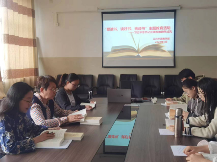 山东财经大学公共外语教学部于5月9日于1304会议室举办学习贯彻习近平新时代中国特色社会主义思想主题教育及“爱读书、读好书、善读书”主题教育活动。山东财经大学公共外语教学部党委书记杜丽娜和党委副书记范志毅出席活动,公共外语教学部研究生参加此次活动。