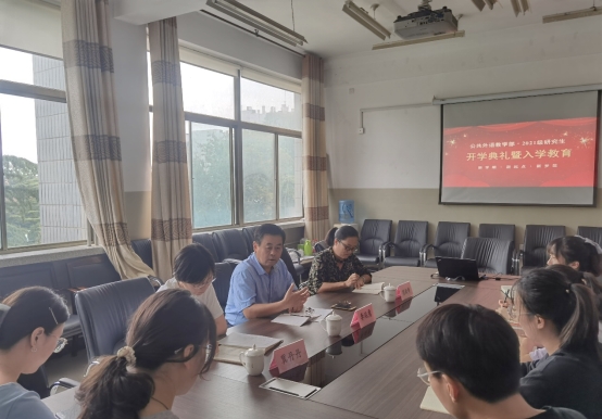 2021年9月24日下午,公共外语教学部在1304会议室举行开学典礼暨研究生入学教育大会。院长李延勇,党委副书记周新秀,辅导员冀丹丹及2021级全体研究生和老生代表参加活动。会议由冀丹丹主持。