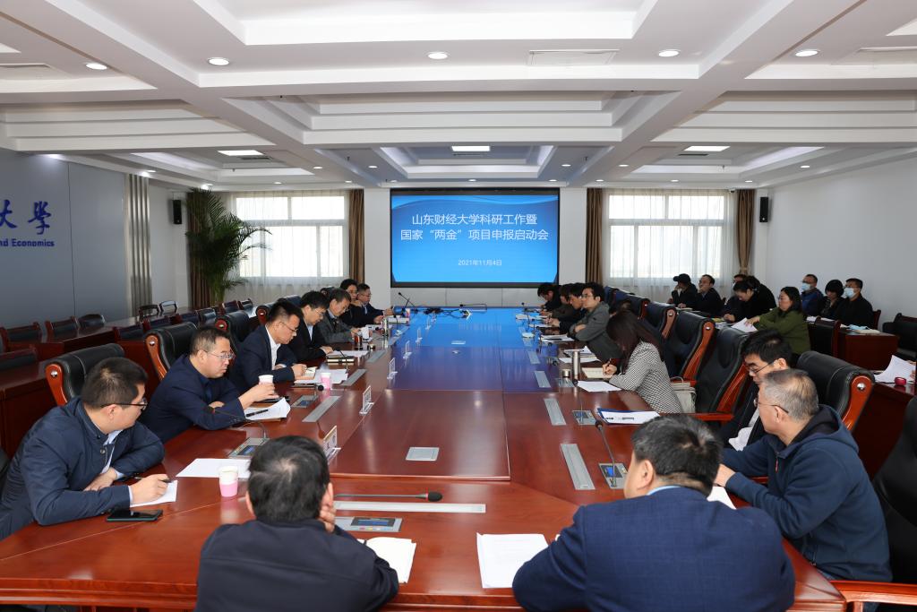 会上,科研处处长马恩涛对照分析了我校科研工作有关情况,指出了我校在国家“两金”项目组织申报中存在的问题,部署了学校近期科研工作特别是国家“两金”项目申报工作。管理科学与工程学院、数学与数量经济学院、统计学院和金融学院负责人分别介绍了国家“两金”项目申报经验。